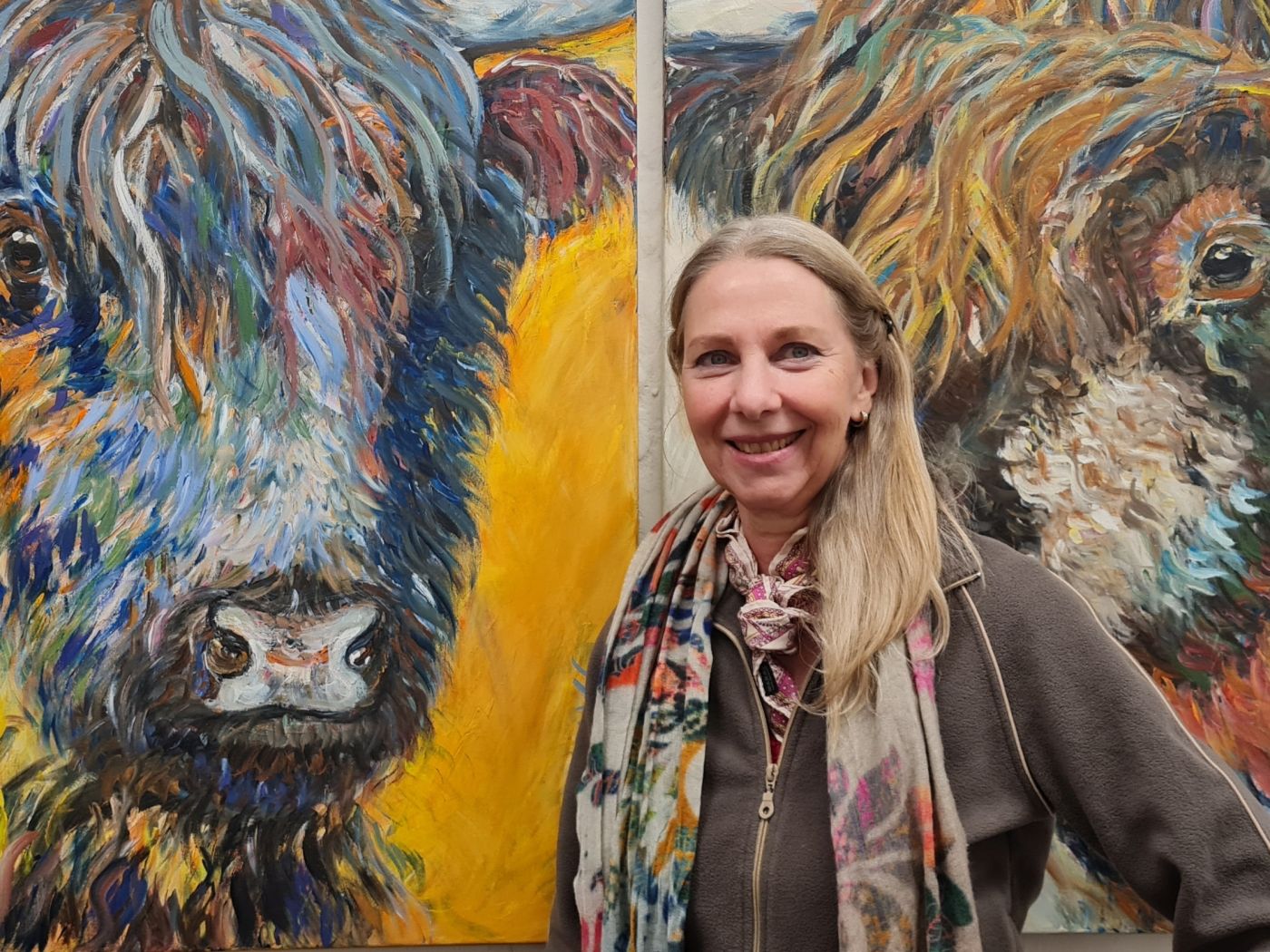 Mein künstlerisches Thema, die Kuh, hat sich nicht aus einer theoretischen Idee entwickelt, sondern aus einer Begegnung. Mich hat von Anfang an die Präsenz dieser Tiere, die ich seit meiner Kindheit kenne, fasziniert – ihre Ruhe, ihre Kraft und ihre ganz eigene Persönlichkeit. Wenn man ihnen wirklich Zeit widmet, merkt man schnell, dass keine Kuh der anderen gleicht. Vor ca. 20 Jahren wollte ich die Kuh als energetische Kraft in die Großstadt bringen. Mein erstes Kuh-Bild wurde mir quasi aus den Händen gerissen und ich erkannte, dass dieses Thema viele Menschen anspricht.