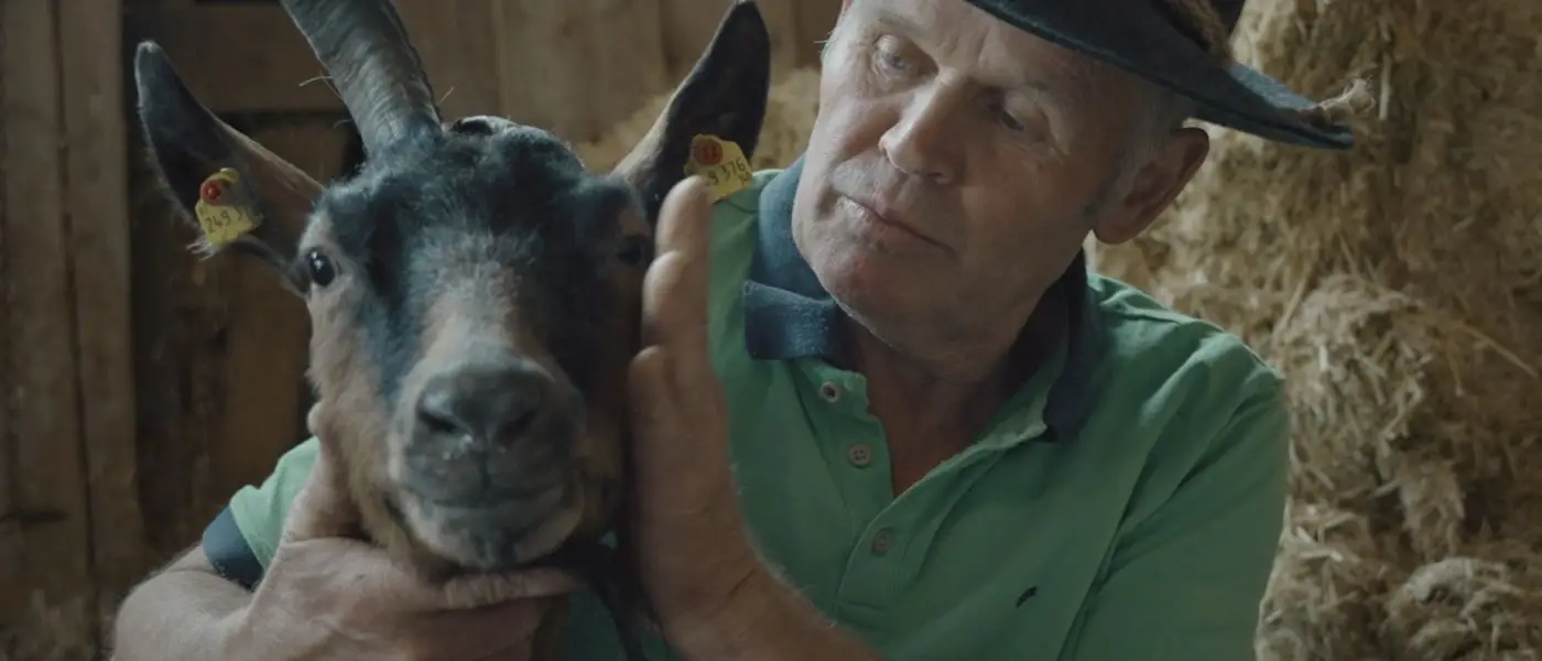 Stocker mit seiner Lieblingsziege Braunelle. Foto: Stilkraft Film
