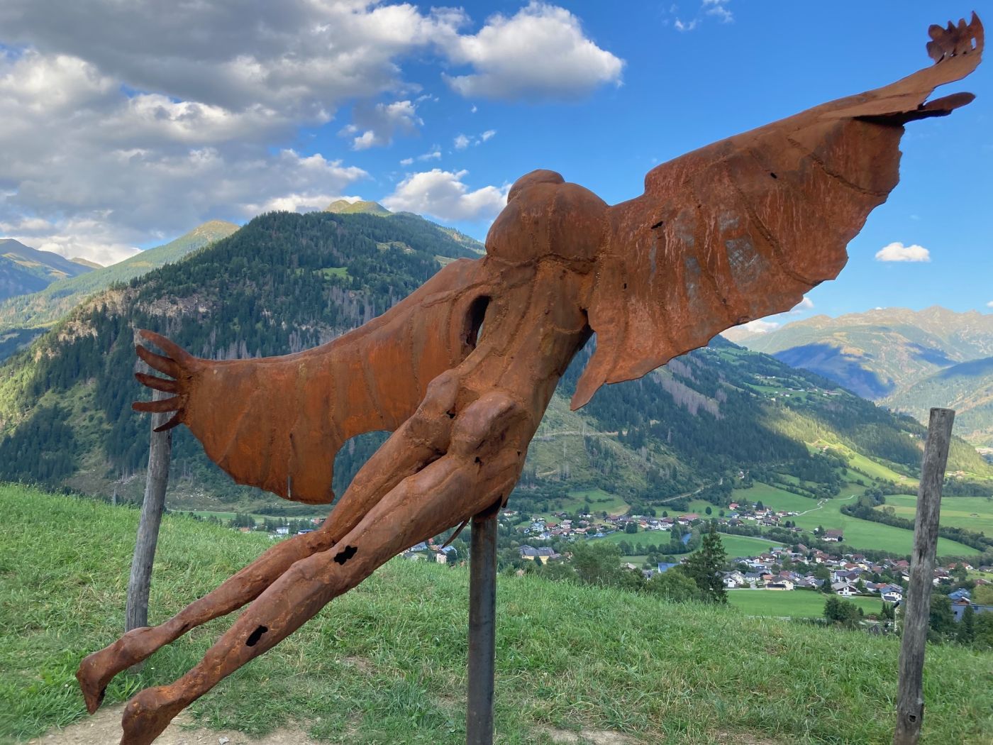 In Winklern werden Gäste und Durchfahrende von einer neuen Skulptur begrüßt. Am sogenannten Zens-Parkplatz vom Iselberg nach Winklern kommend, breitet ein geflügeltes Wesen „Homo Volucris“ seine Adlerschwingen aus. Die Skulptur soll neugierig machen und zum Stehenbleiben animieren, sagt Bürgermeister Hans Thaler.