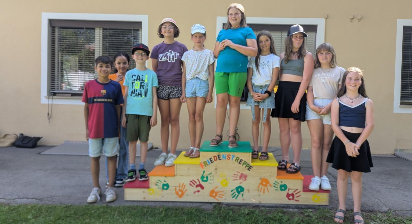 Mit einer selbstgebauten Friedenstreppe lernen Kinder der VS Michael Gamper in Lienz, wie aus Zoff wieder Zusammenhalt wird.