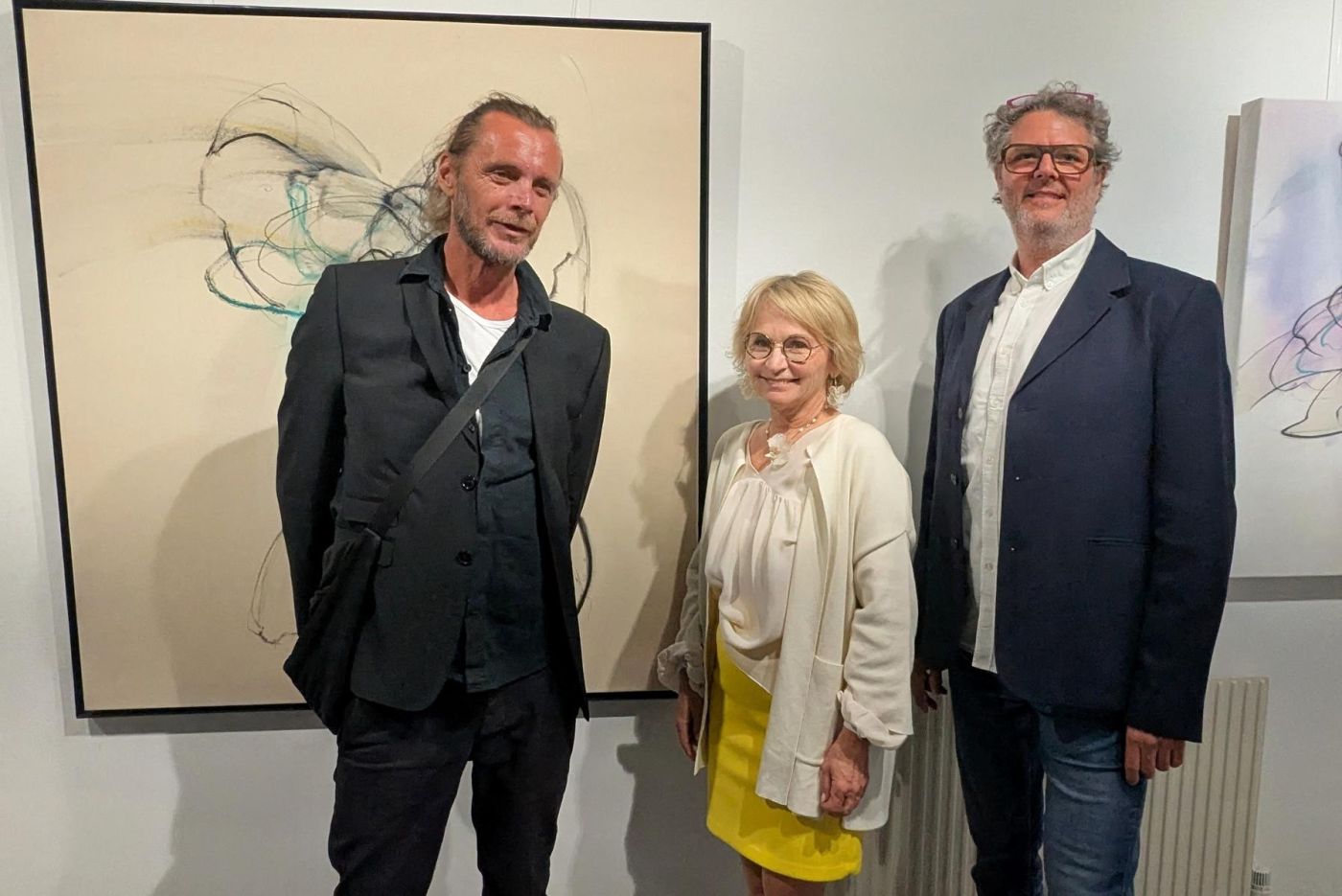 Foto: (vl) Künstler Udo Hohenberger, Lienzer BGMin Elisabeth Blanik und Galerist Stefan Leibetseder