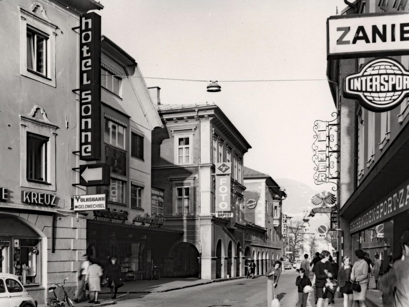 Das Titelbild des neuen Fotokalenders 2025 der Stadt Lienz mit der Andrä-Kranz-Gasse um 1975. Bild: TAP