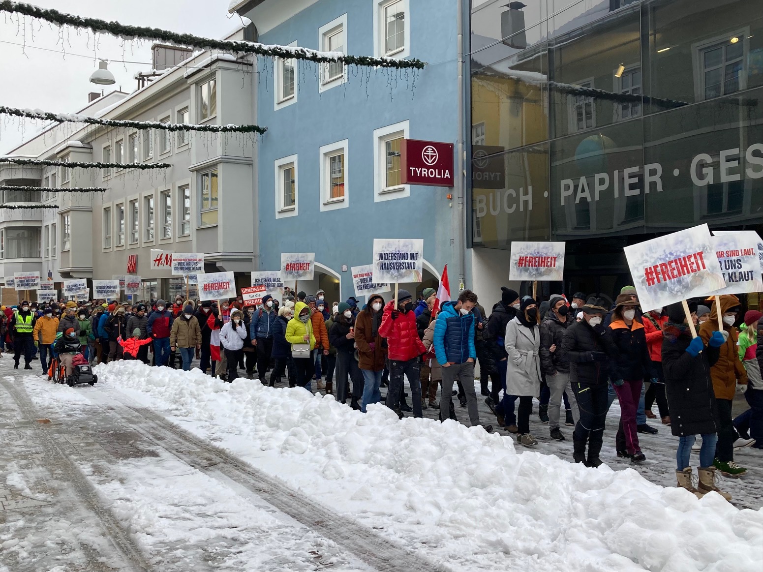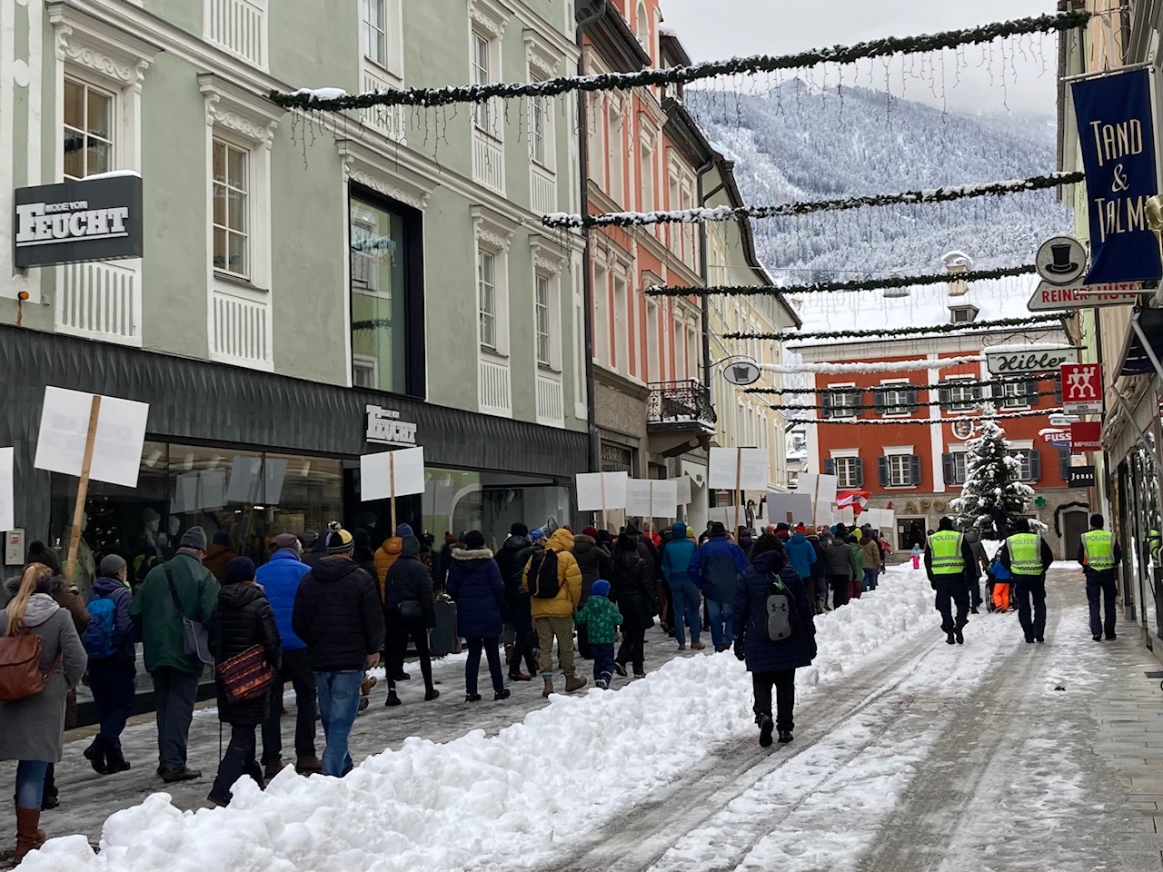In Lienz sind am Sonntagnachmittag wieder mehrere hundert Menschen auf die Straße gegangen, um gegen die Coronamaßnahmen und die angekündigte Impfpflicht zu protestieren. Die Kundgebung war diesmal bei der Behörde angemeldet, ein Großaufgebot der Polizei überwachte die Versammlung: