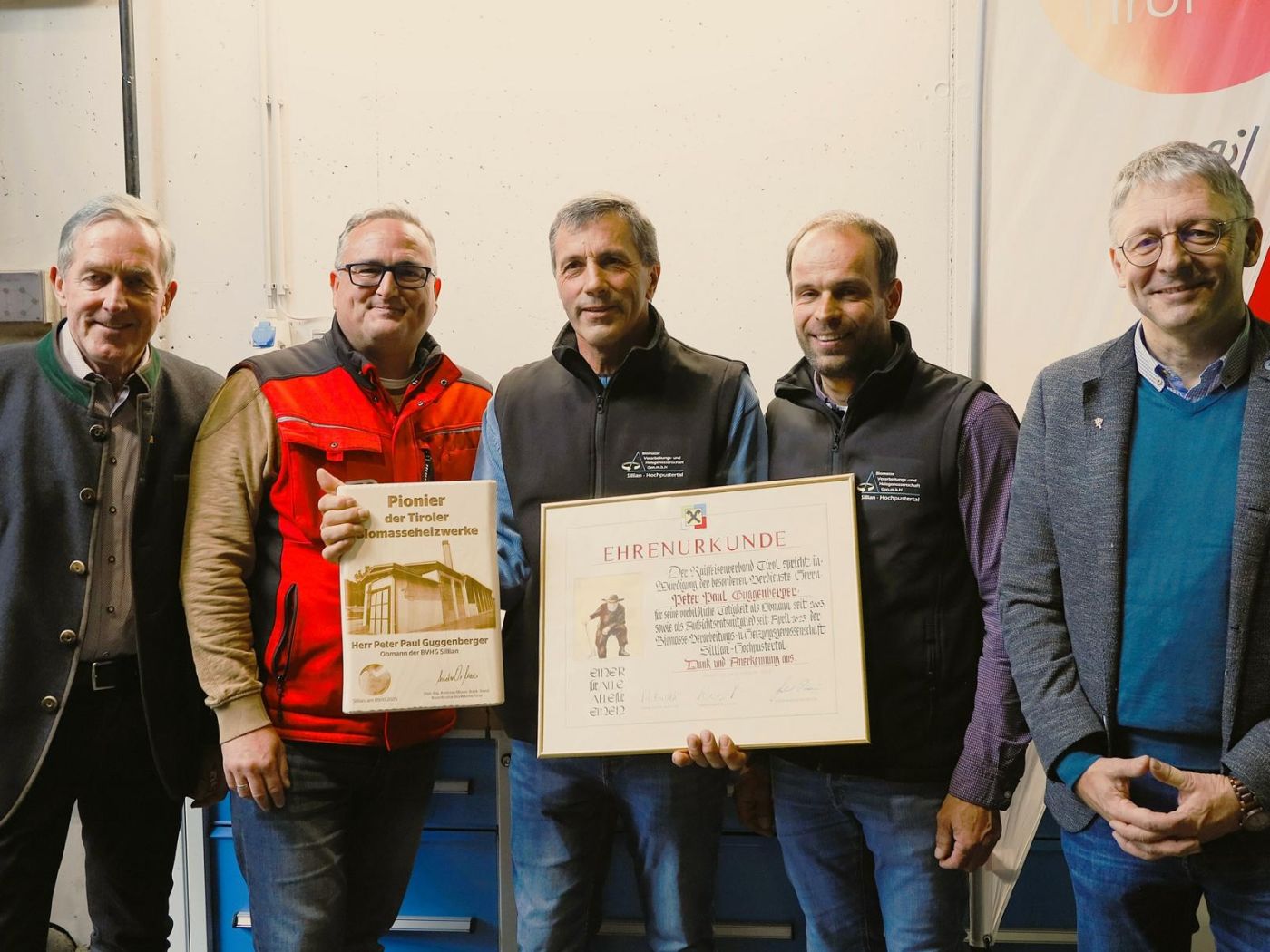 Im Heizwerk Sillian wurde am Donnerstag gefeiert. Nach über 25 Jahren an der Spitze der BVHG Biomasse-Verarbeitungs- und Heizgenossenschaft Sillian-Hochpustertal hat sich der Gründer und langjährige Obmann und Geschäftsführer Peter Paul Guggenberger in den Ruhestand verabschiedet. Die Genossenschaft arbeitet jetzt eng mit der Regionalenergie Osttirol zusammen, deren Geschäftsführer Ferdinand Mossegger ist nun auch Geschäftsführer der BVHG Sillian.