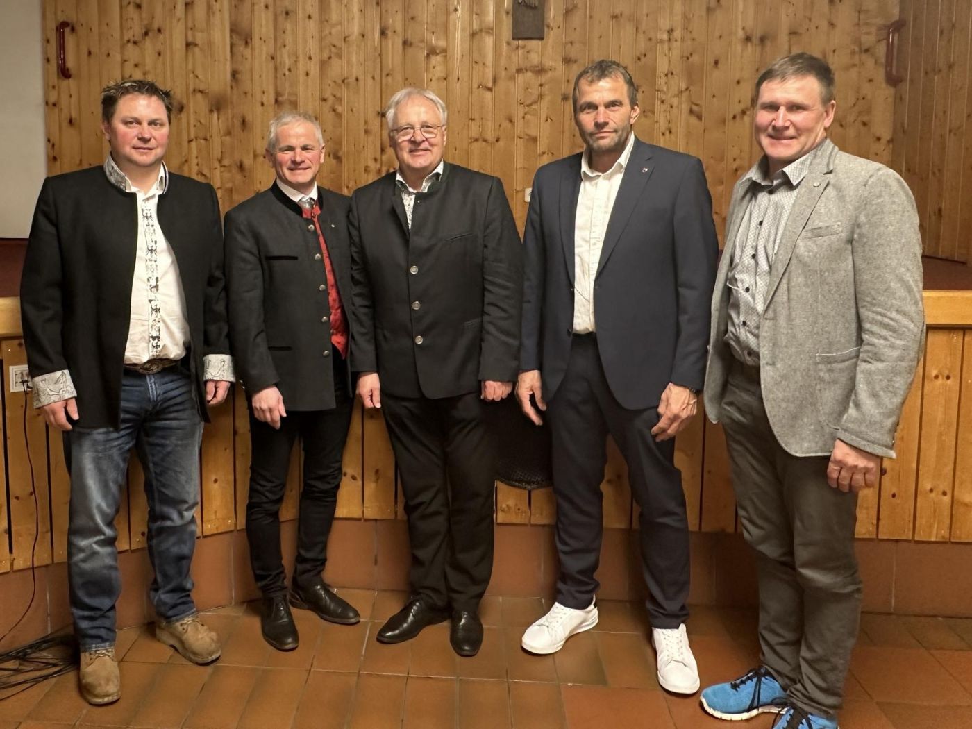Abschied und Dankeschön für Hermann Gahr: V.l: Markus Steiner (2. Obmann Stv.), GF Thomas Oppeneiger, Hermann Gahr (GF Maschinenring Tirol), Obmann Hans Gumpitsch, Franz Aichner (1. Obmann Stv.). Foto: Kirchmair