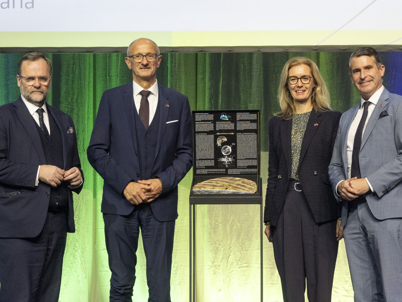 Die Übergabe des „Kolo Wheel“ symbolisiert den Wechsel des EUSALP-Vorsitzes von Österreich und Liechtenstein nach Bayern. Foto: Land Tirol/Die Fotografen