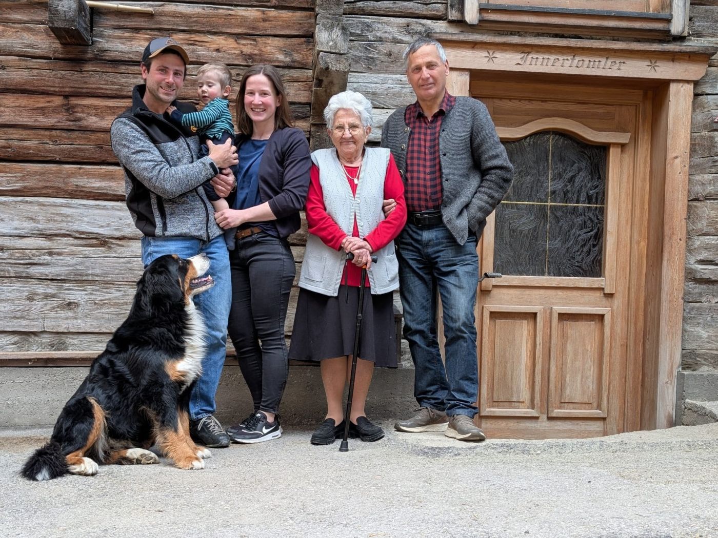 Stephan und Sabrina Bratusek mit Sohn Josef sowie dem ehemaligen Besitzer Sepp Steiner und dessen Mutter Genoveva Jesacher. Foto: Privat