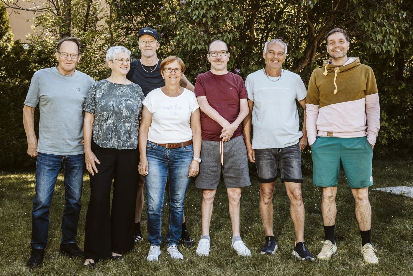 Der Vorstand des ESV Lienz freut sich auf die Saison. (vlnr.) Kassier-Stv. Werner Mitterhofer, Obfrau Gerlinde Kieberl, Eric Kieberl (stv. Sektionsleitung Tennis), Bernadette Schmuck (Sektionsleitung Tennis), Kassier Manuel Nikolay, Markus Sulzenbacher (Kantine), Bernhard Gerardts (Schriftführer). Nicht am Bild: Martin Wohlgenannt (Obfrau-Stv.) und Emanuel Striednig (Schriftführer-Stv.). Foto: Christof Gaggl