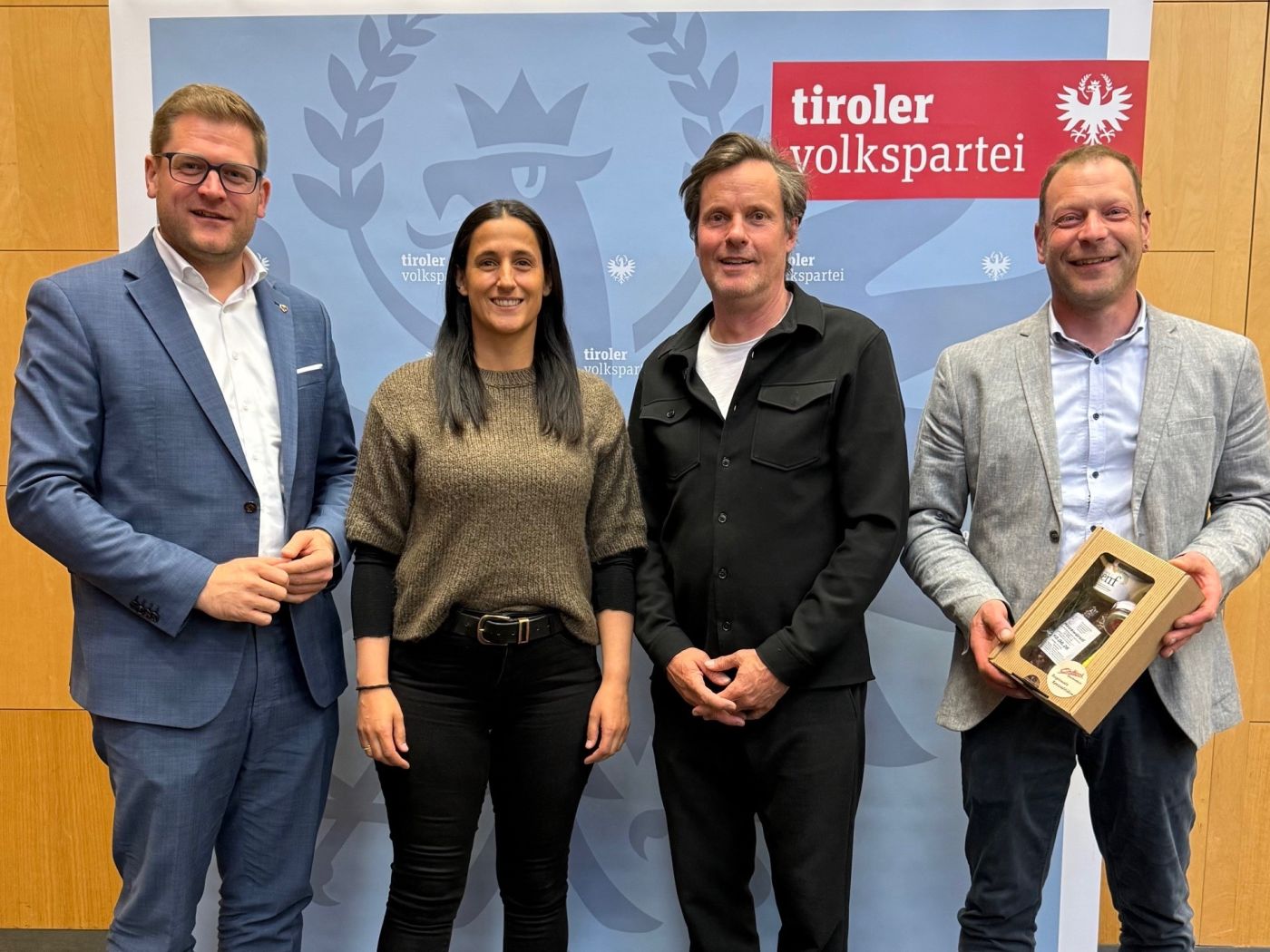 Gemeindeparteitag in Innervillgraten: vlnr.: BPO BRPräs. Markus Stotter, GPO Stv. Anna Huber, GPO Vbgm. Christof Schett und GPO-Stv. GR Gerhard Haider (nicht am Bild GPO-Stv Bgm. Andreas Schett). Foto: Tiroler Volkspartei Lienz