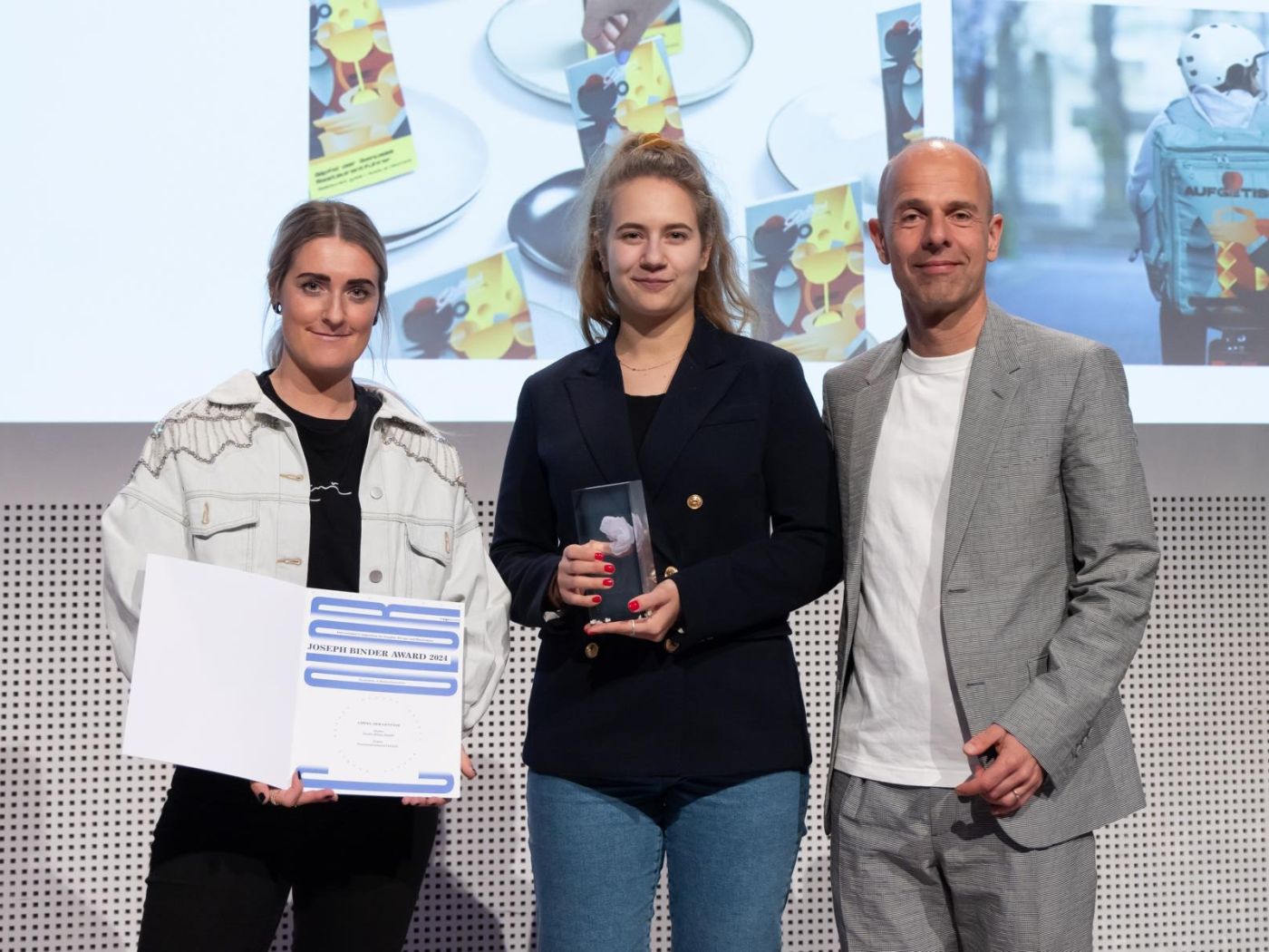 Nina Gomig und Lara Rupp von Studio20four mit Vertreter des Joseph Binder Awards. Foto: Madzigon/Fischer