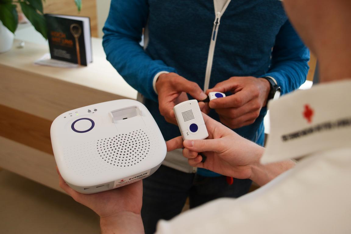 Ein Sturz oder eine Verletzung im Haushalt können ganz schnell passieren. Und dann ist rasche und richtige Hilfe nötig. Das sogenannte Rufhilfegerät vom Roten Kreuz kann dabei Sicherheit und Hilfe geben.