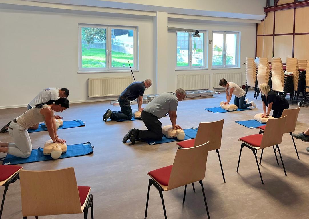 Mit einer kostenlosen Geräteeinschulung für die MitarbeiterInnen der neuausgestatteten Gemeinden und Unternehmen im Rahmen von Wiederbelebungstrainings wurde bereits begonnen. Die Einschulungen dauern jeweils zwei Stunden und beinhalten die durchzuführenden Maßnahmen an einem reglosen Notfallpatienten sowie die Arbeit und der probeweise Einsatz der neuen Geräte anhand von Übungsfallbeispielen. Insgesamt sind fünf solcher Schulungen vorgesehen, von denen drei bereits stattgefunden haben.