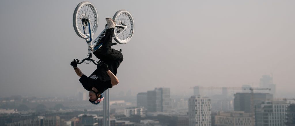 "Biking on another level": Der Osttiroler Rad-Akrobat verzaubert die Hansestadt. Backflip auf dem Dach des Konzerthauses!