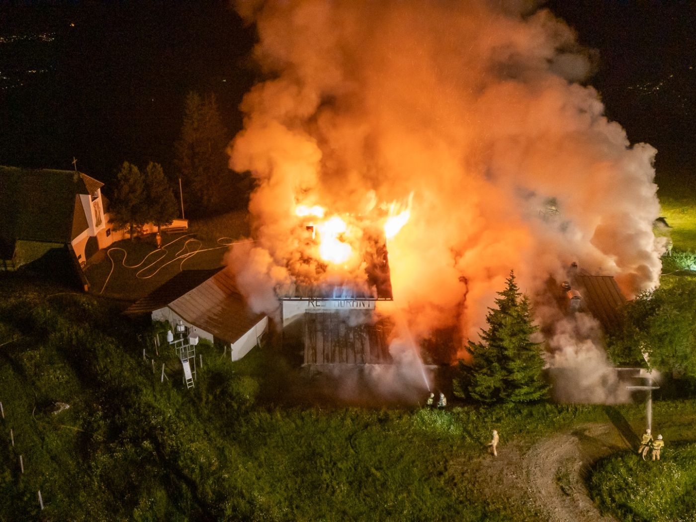 Gegen 0.22 Uhr wurde die erste Feuerwehr alarmiert: Gebäudebrand auf dem Zettersfeld! Die ehemalige Jugendherberge steht in Brand, mehrere Feuerwehren des Talbodens wurden alarmiert: Gaimberg, Thurn, Lienz, Nußdorf-Debant, Oberlienz, Oberdrum. Sieben Tankfahrzeuge, ein Rüstfahrzeug und mehrere Kleinlöschfahrzeuge rückten aus.