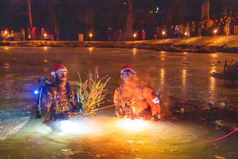 Christbaum im Schlossteich versenkt