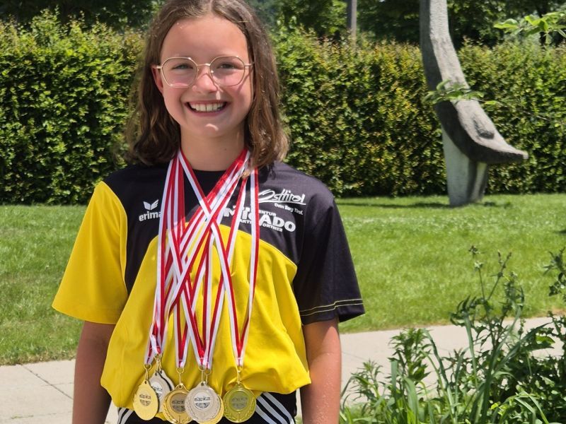 Gleich fünf Gold- und drei Silbermedaillen holte Julia Salcher von der Schwimmunion Osttirol bei den Salzburger Landesmeisterschaften.