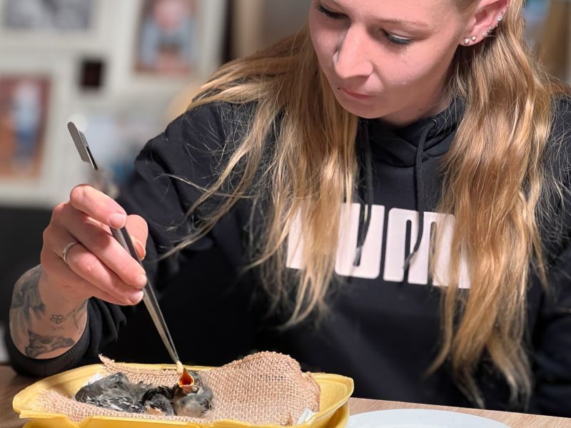 In Huben wurde vergangenen Samstag ein Vogelnest mit fünf Küken gefunden. Nach vergeblicher Hoffnung auf Rückkehr der Vogelmutter, kümmert sich nun Tierschützerin Anja Mariacher um die Nestlinge.