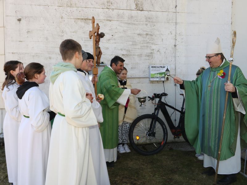 E-Bike tanken mit Gottes Segen? Das geht ab sofort bei der Pfarre zur Heiligen Familie. Der Bischof segnete die Ladestation.