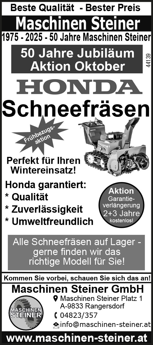 Hallenflohmarkt am Samstag, 18. Oktober, in Steinfeld, von 9 bis 12 Uhr. Auskunft unter 0676-4900861.