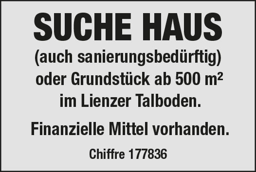 Junges Paar mit landwirtschaftlichem Facharbeiter sucht eine Hofstelle mit ausreichend Grund zum Führen einer Landwirtschaft – Bausubstanz egal – als Nebenerwerb und zur Landschaftspflege. Als Leibrente auch möglich. Diese E-Mail-Adresse ist vor Spambots geschützt! Zur Anzeige muss JavaScript eingeschaltet sein., 0664-8978036.